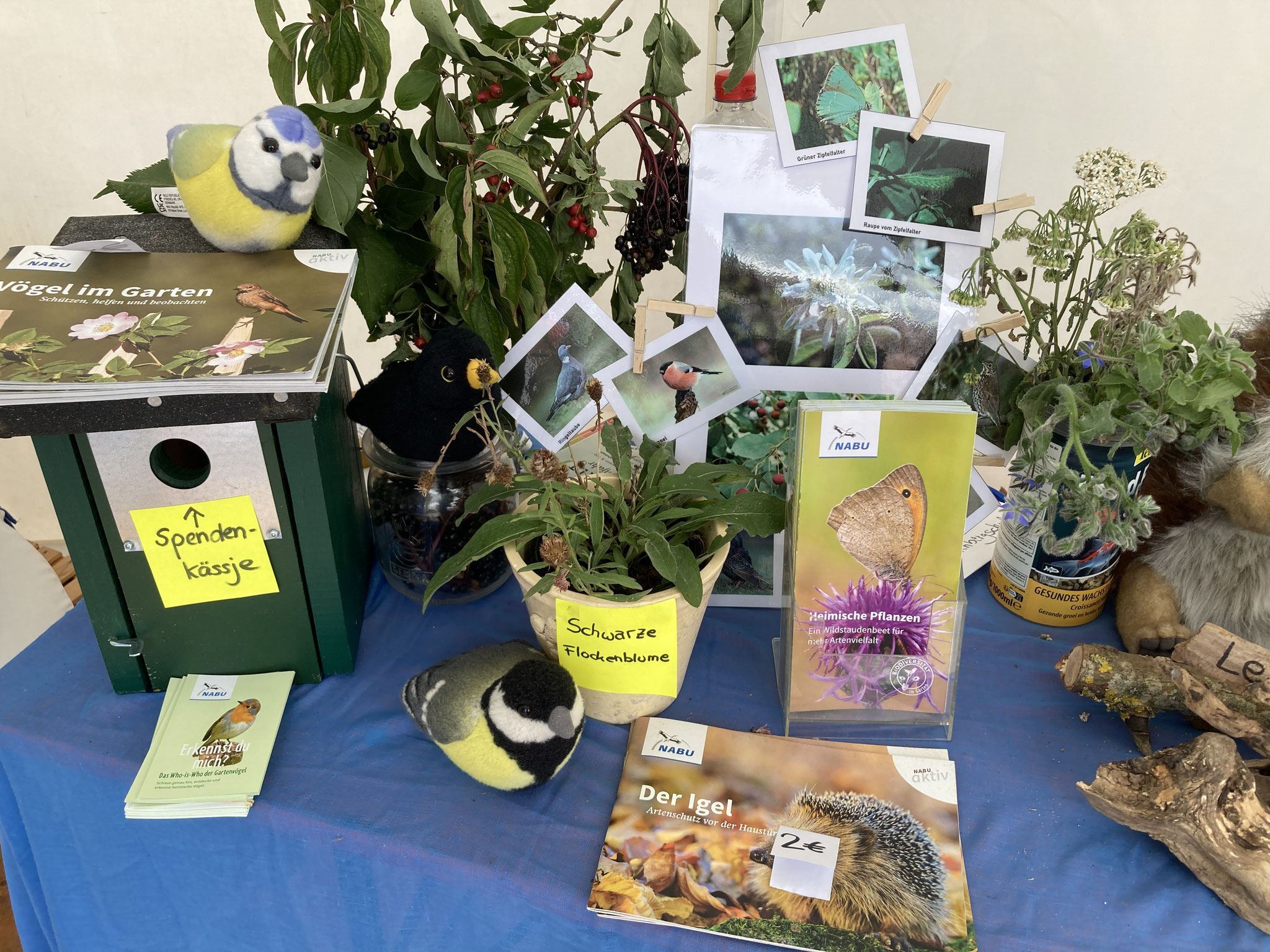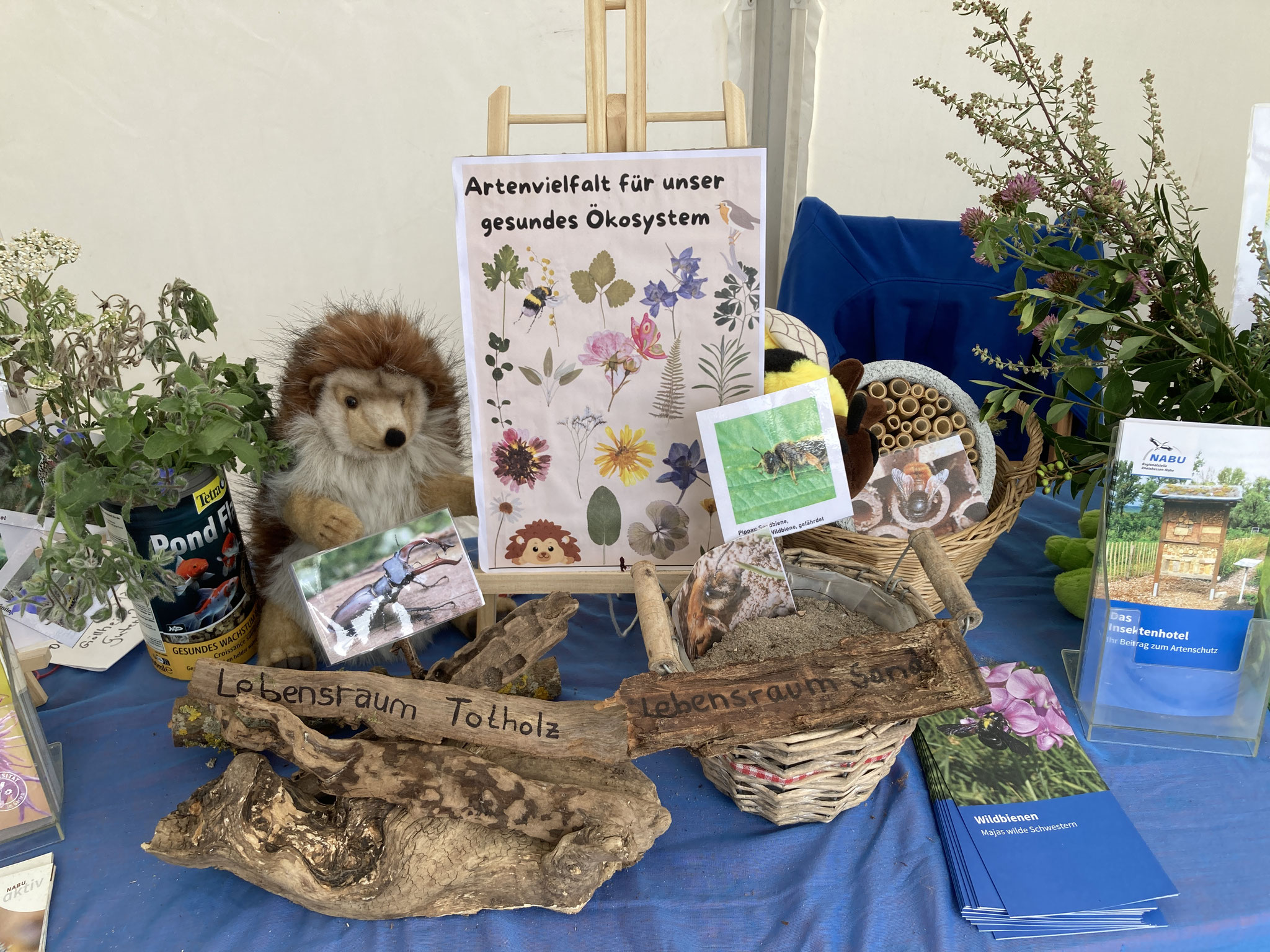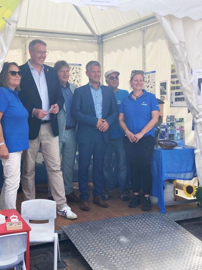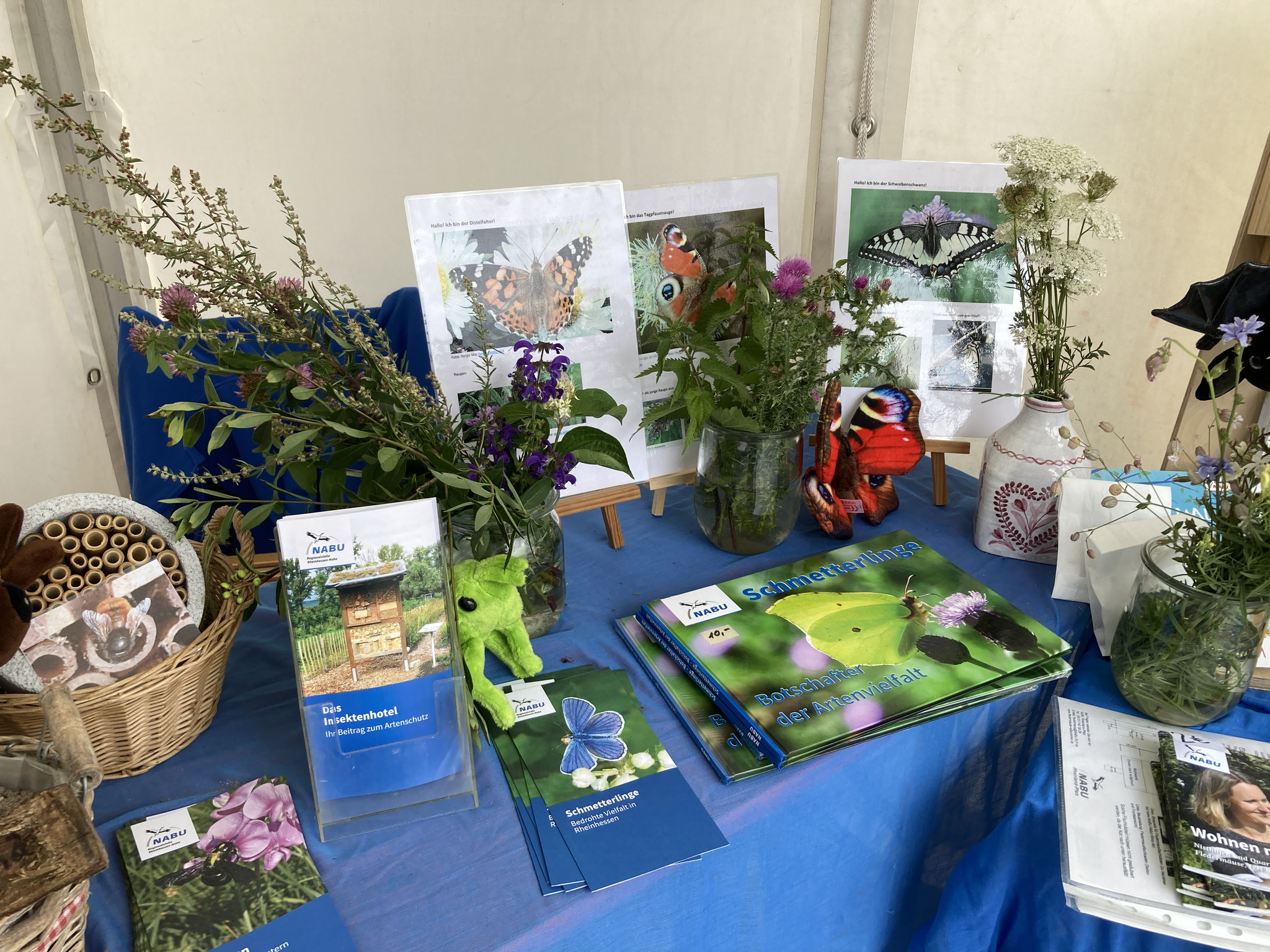 Gut besucht war unser wunderschön gestalteter NABU-Stand auf dem Ehrenamtstag am 31. August in Alzey. Zahlreiche Erwachsene nutzten die Gelegenheit, sich über die Natur und ihren Schutz zu informieren oder einfach mal mit uns ins Gespräch zu kommen. Die Kinder zeigten sich begeistert von der Möglichkeit, Insekten unter einem bereitgestellten Binokular aus nächster Nähe anzuschauen. Uns wurde nicht langweilig! Am Ende gab es noch hohen Besuch von Ministerpräsident Alexander Schweizer, Landrat Heiko Sippel und Bürgermeister Steffen Jung.