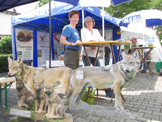 Flyer, Poster, Broschüren und Informationen über die örtlichen NABU-Gruppen fanden am Informationsstand der Regionalstelle den Weg zu Naturinteressierten. Unterstützt von Helfern der örtlichen NABU –Gruppen konnten die Fragen wie z.B. „Wie baut man ein Insektenhotel?“ oder „Wie kann ich meinen Garten naturnaher gestalten?“ beantwortet werden und die kleinen Möglichkeiten aufzuzeigen, im eigenen Umfeld etwas für die Natur zu tun. Auch eine Wolfsbotschafterin stand zeitweilig zur Verfügung und konnte das große Interesse an diesem Thema informativ stillen. Besonders die vielen NABU-Mitglieder freuten sich über die Möglichkeit, mal mit „ihrem“ Verband ins Gespräch zu kommen.